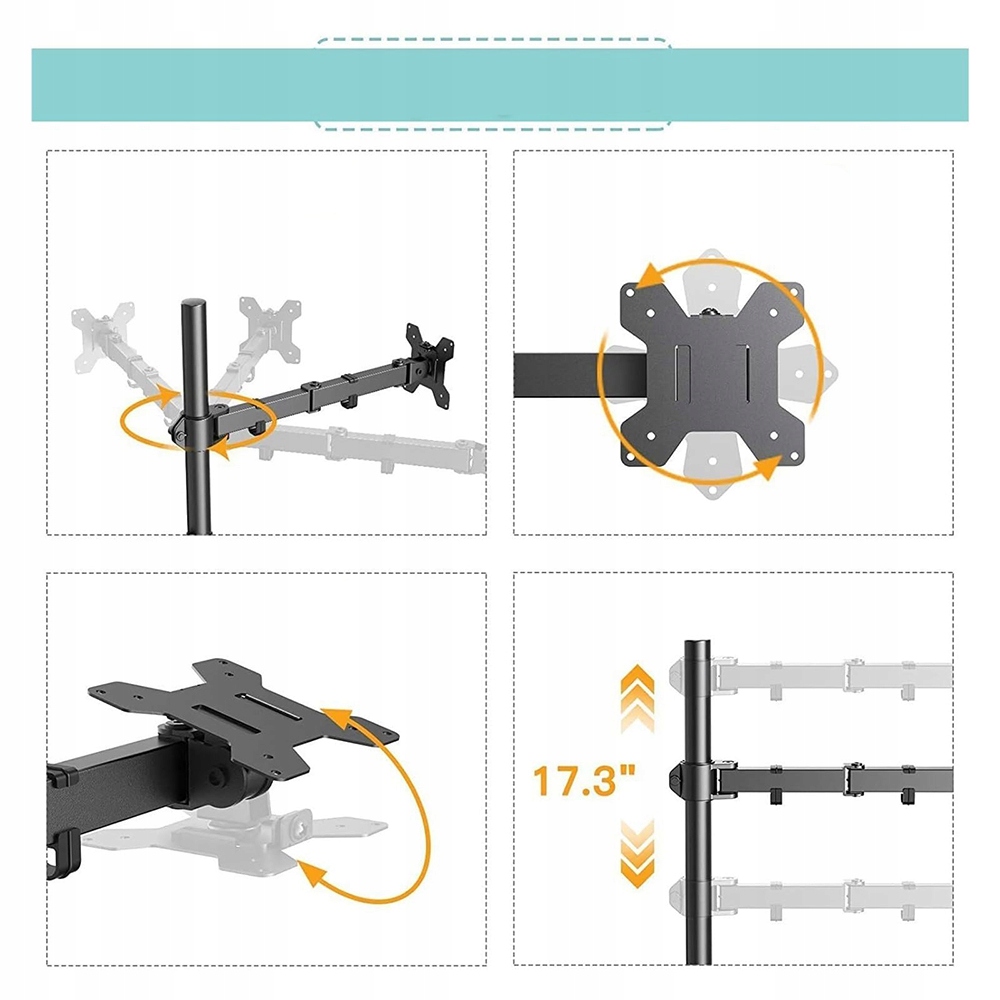 – Очень гибкий кронштейн легко наклоняется на 90 градусов, поворачивается на 180 градусов, поворачивается на 360 градусов и имеет диапазон регулировки по высоте 430 мм.