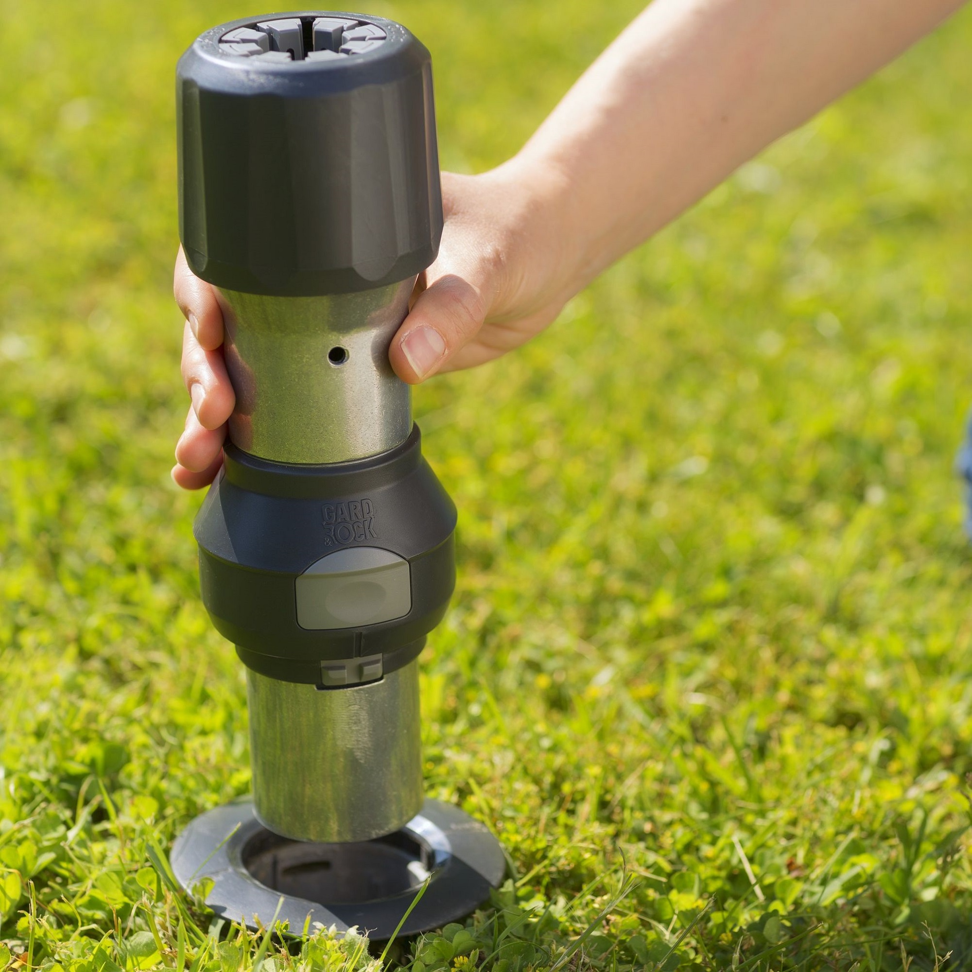 Система быстрой фиксации позволяет быстро и легко установить садовый инвентарь, например зонтик, сушилку для одежды или спортивные шесты.