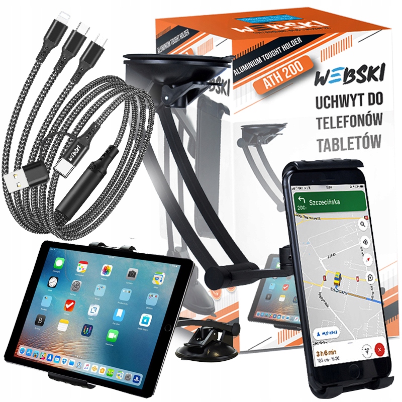 ДЕРЖАТЕЛЬ ПЛАНШЕТА ДЛЯ ТЕЛЕФОНА С ПРИСОСКОЙ ДЛЯ ОКНА КАБИНЫ + КАБЕЛЬ WEBSKI 6-В-1