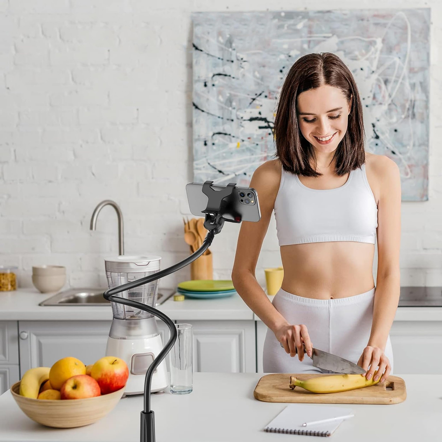 ✨【Широкий Совместимость】✨-Наш держатель для телефона на гибкой шее совместим с устройствами 3,5–6,5 дюйма, такими как iPhone13 / Pro / Pro max / iPhone 12 / Pro max / Pro / Mini / iPhone 11/11 Pro / x max /xs /x / 8+ / 8 / 7+ / 7 , Samsung S10 / 10+ / 10 / 9 / 9+ / 8+ / 8 / 7и другие смартфоны.