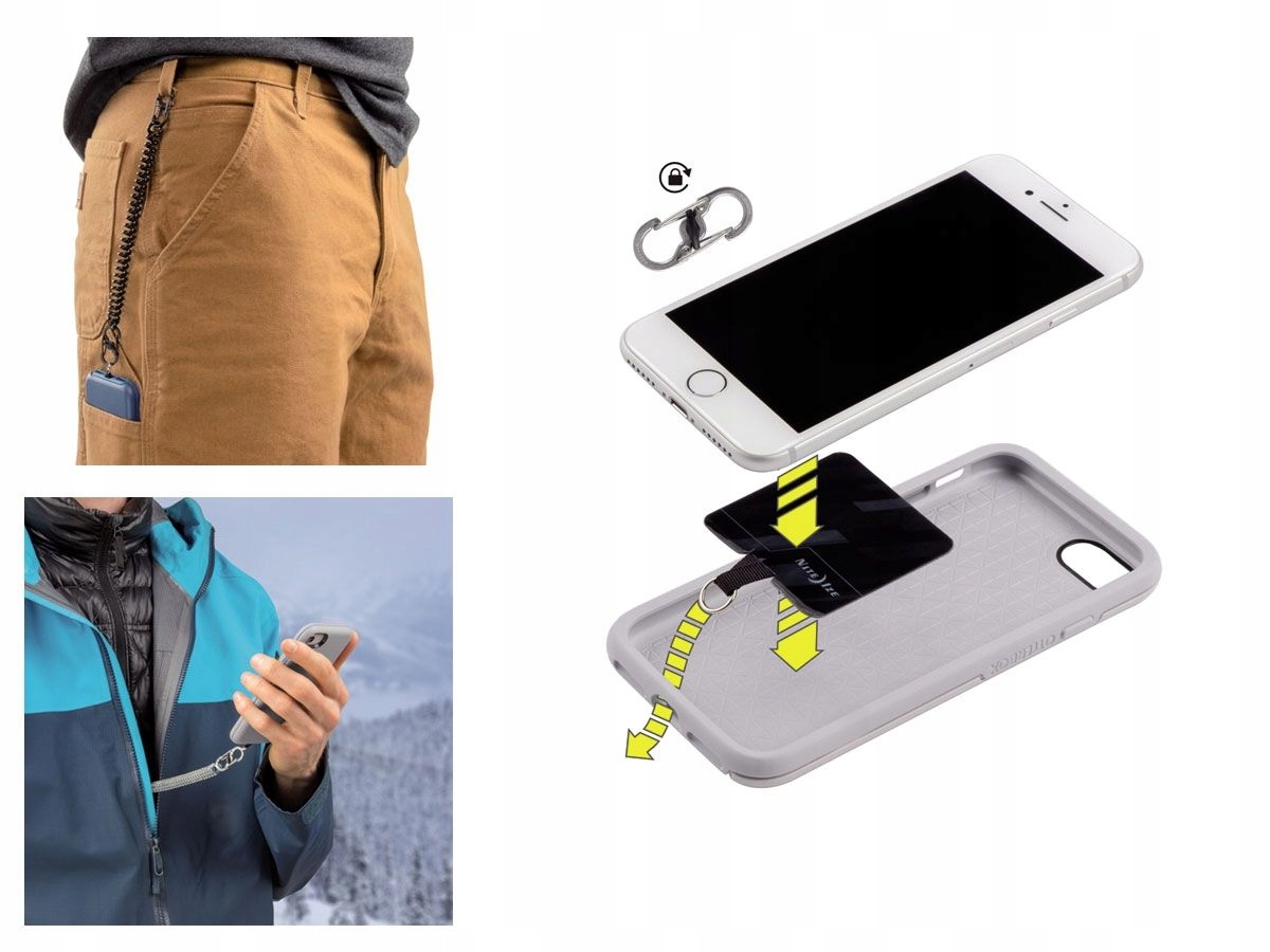 Особенности: - Чрезвычайно тонкий дизайн с креплением, разработанным специально для порта зарядки. корпуса, не нарушая процесс зарядки порта зарядки. - Входящий в комплект съемный спиральный кабель длиной до 24 дюймов (60 см) позволяет гибко использовать телефон. - В комплект входят два S-Biner MicroLock из нержавеющей стали, с затворами также из нержавеющей стали. - Совместимость как с проводной, так и с беспроводной зарядкой.