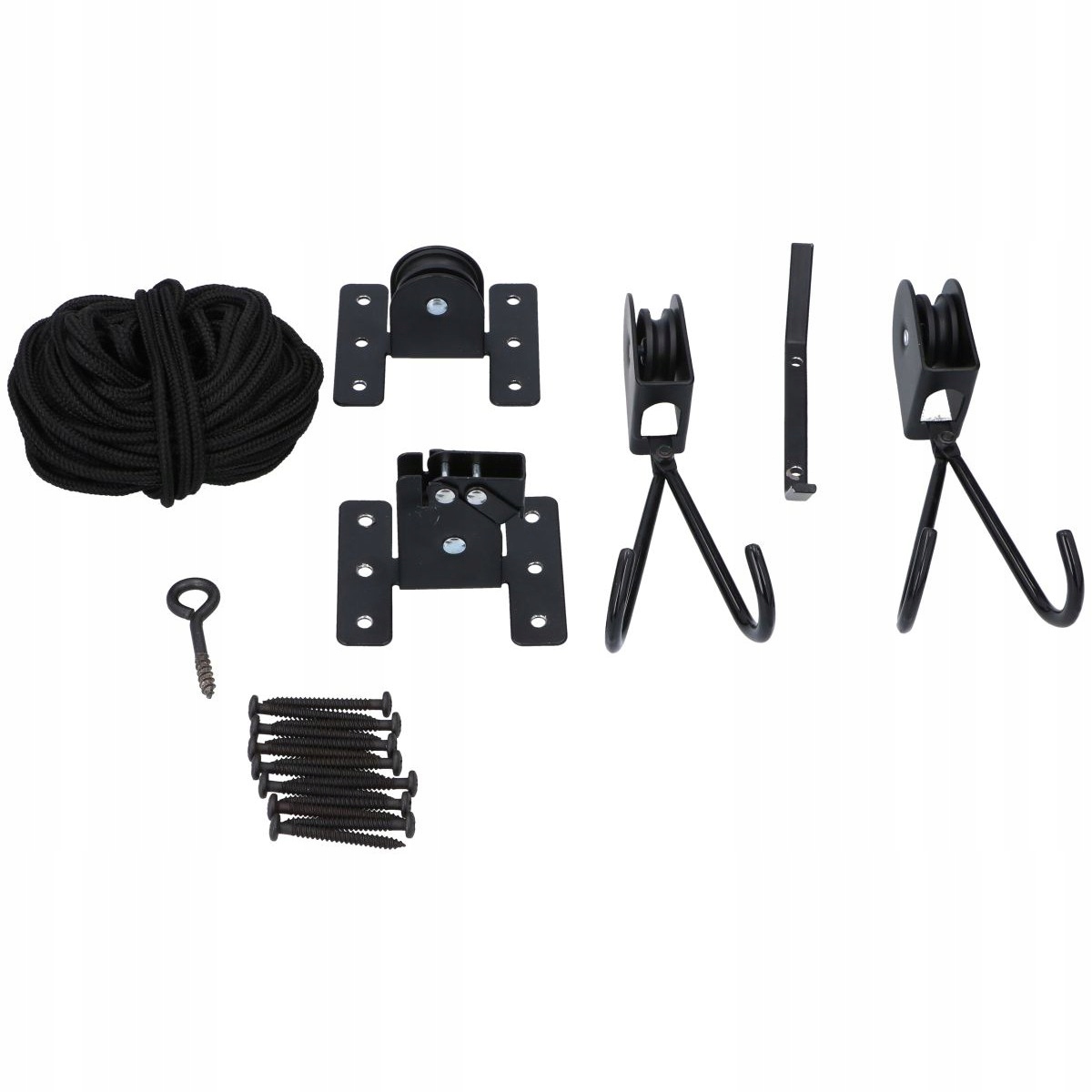 Потолочный велосипедный ручка велосипеда Dunlop - идеальное решение для владельцев велосипедов, у которых нет места в подвале или гараже для его хранения. Сохраните пространство и простое хранилище вашего любимого велосипеда. Один из них поставлен на руль, другой под седлом. Каждый из крючков покрыт специальной резиной, которая предотвращает случайные царапины поднятого велосипеда. Максимальная высота 4 метра, но также удобно приостановка на любую высоту при ремонте. Набор включает в себя все элементы, необходимые для установки вешалки