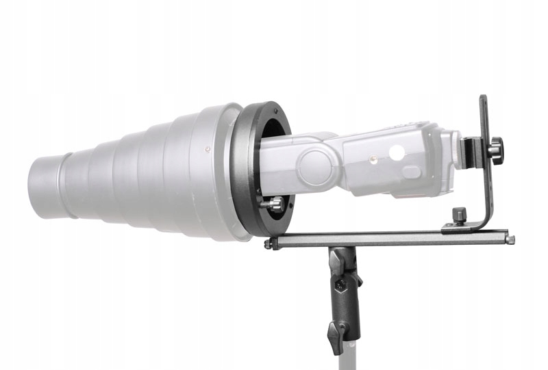 Держатель позволяет подключать любые студийные аксессуары с креплением Bowens к системному (камерному) освещению. После установки лампы на держатель мы можем использовать любой софтбокс, миски, форсунки, косметическую тарелку и т. д. с креплением Bowens.