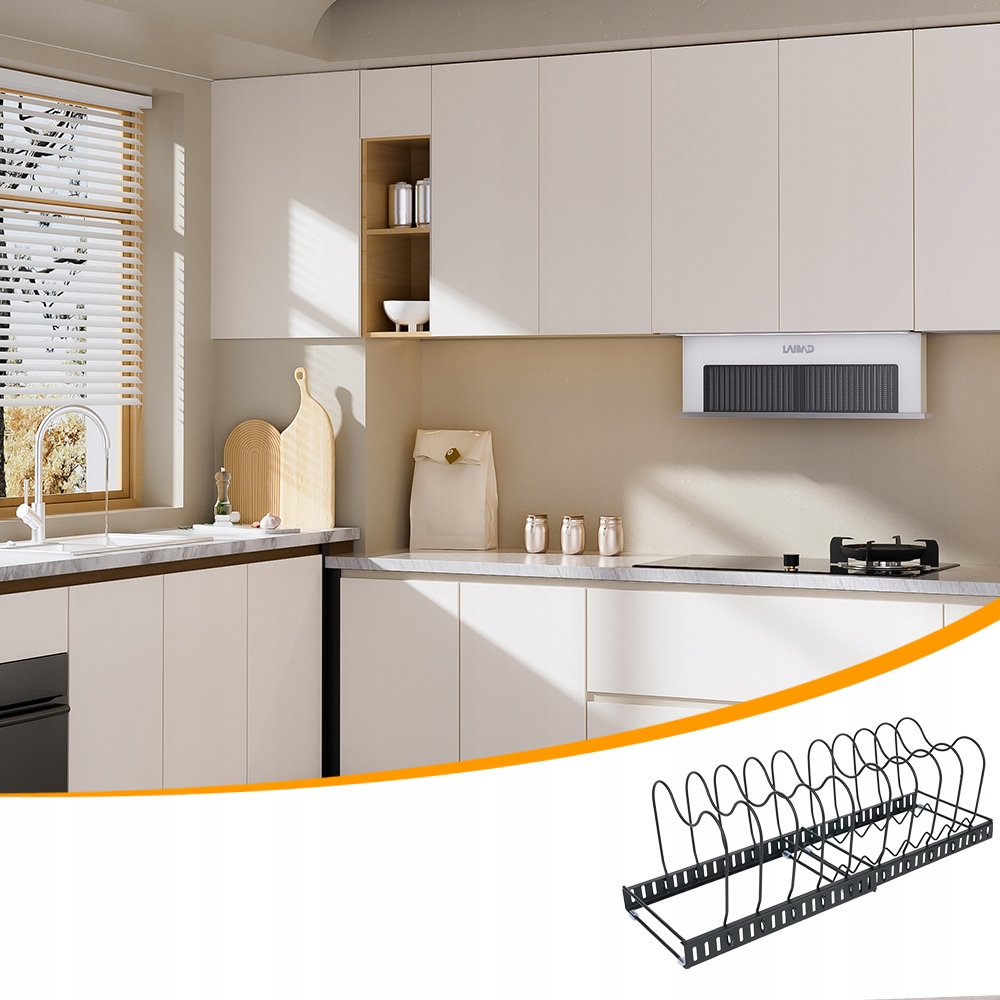 ✅Широкое использование и экономия места:подходит не только для тарелок, разделочных досок, крышек кастрюль, но также для кастрюль и сковородок. Вы можете легко разместить эту полку для столовых приборов в шкафу и ящике, не занимая места на кухне. Получите дополнительное место для кастрюль в шкафах, кладовой, шкафу, под раковиной или на стойке.
