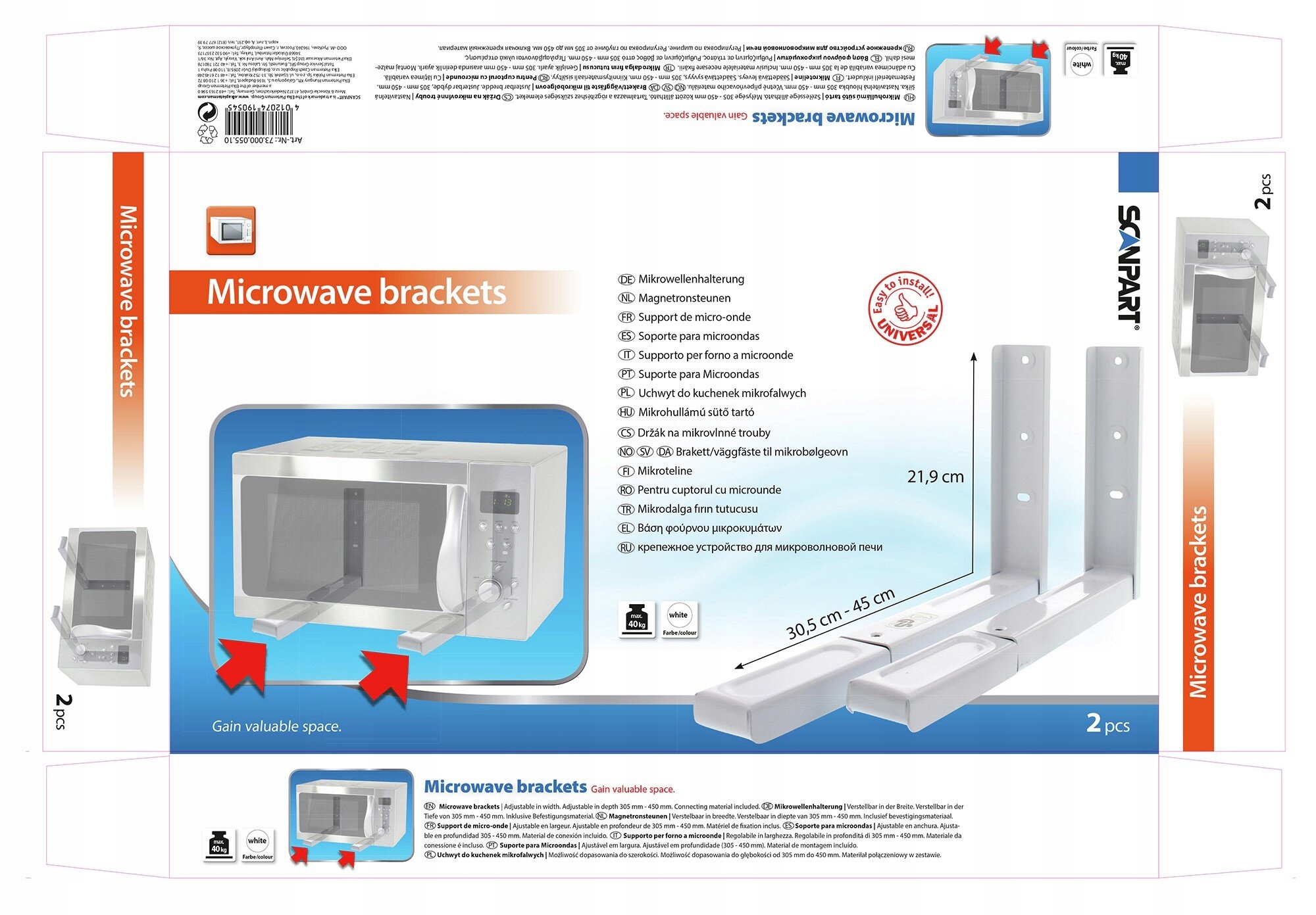 Держатель стены скана для микроволновой печи. Максимальная нагрузка: 40 кг. Он универсален и подходит для всех плитов, доступных на рынке. С помощью этой ручки мы предлагаем вам оптимальное решение для установки микроволновой печи на кухонной стене или непосредственно под кухонными шкафами, чтобы сэкономить пространство и использовать полученное пространство для других целей. Еще одним преимуществом является эргономическая высота места расположения кухни, что облегчает удаление горячих мисок или тарелок и очистить плиту. Все монтажные аксессуары включены в набор (набор графиков расширения).