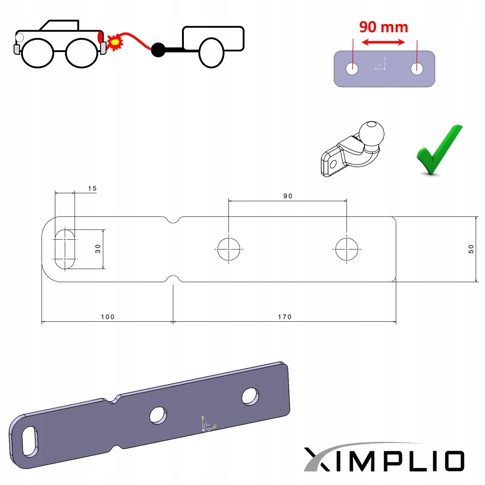 Специальный держатель троса безопасности прицепа подходит для любого буксировочного крюка с фланцевой шариковой головкой для двух винтов с расстоянием между отверстиями 90 мм.