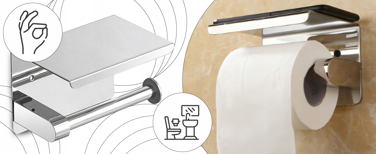 Держатель для туалетной бумаги с полкой имеет универсальный дизайн, который идеально впишется практически в любой интерьер ванной комнаты.