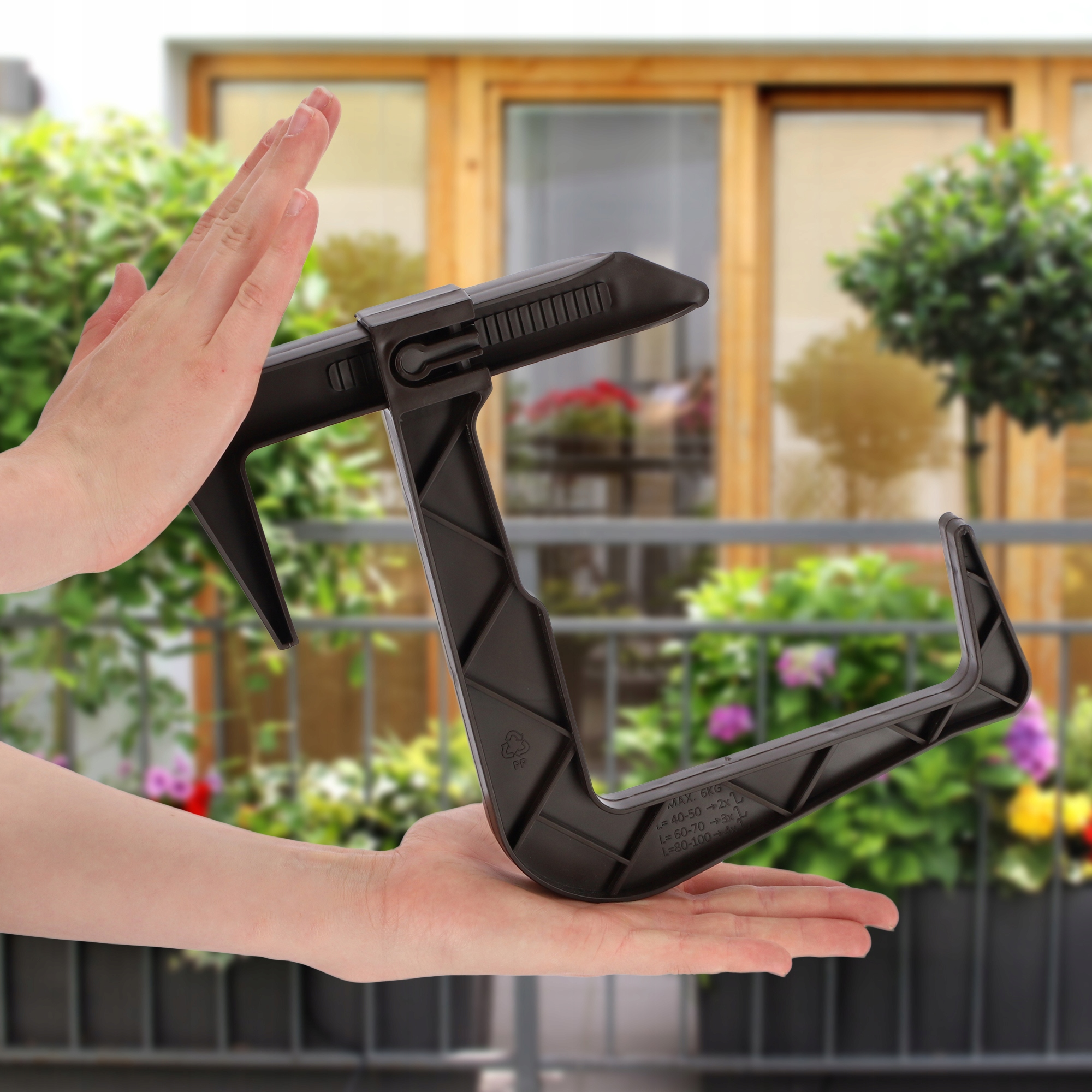✅Держатели для балконных ящиков удлиненной формы позволяют легко размещать их как на классических металлических перилах, так и на деревянных перилах с перекладинами.