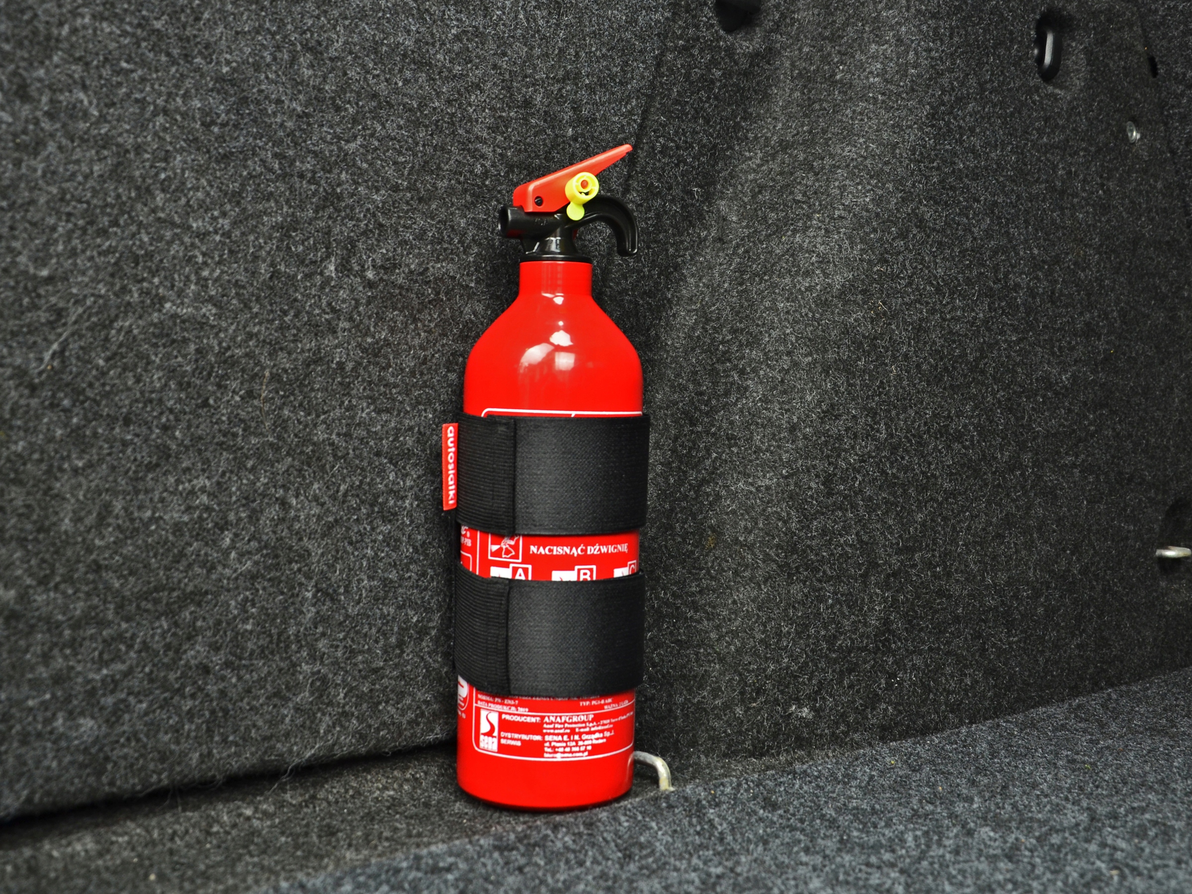 Перед покупкой убедитесь, что липучка прилипает к обивке багажника. Если липучка, например, от куртки или сумки, прилипнет к ковру, лента огнетушителя будет вести себя таким же образом.