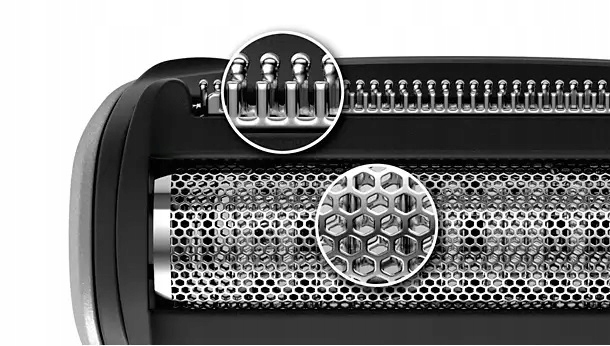 - Бритвенная головка оснащена гипоаллергенной сеткой и запатентованными закругленными кончиками, защищающими кожу во время бритья. Двусторонние триммеры подстригают более длинные волоски, которые затем сбриваются через сетку для лучшего результата.