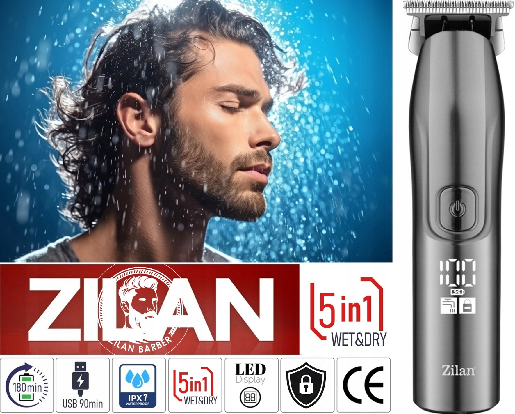 ZILAN OKEANOS 5IN1 является ВОДОНЕПРОНИЦАЕМЫМ, благодаря сертификации класса водонепроницаемости IPX7, триммер предназначен для использования как для ВЛАЖНОГО, так и для СУХОГО. Независимо от того, хотите ли вы быстрой, деликатной коррекции или тщательного ухода, вы можете без опасений использовать устройство в душе.