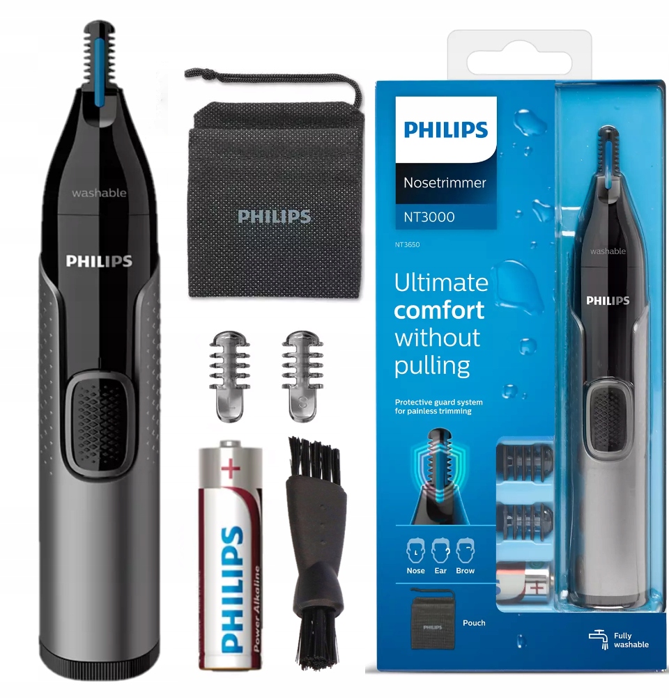 ВОДОНЕПРОНИКНИЙ ТРИМЕР PHILIPS ВОЛОССЯ НОСА, ВУХ, БРІВ + ЧОХОЛ, КОВПАЧКИ, БАТАРЕЙКИ