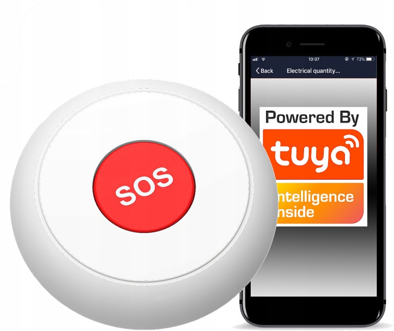 Беспроводная кнопка SOS - при нажатии она оповещает вас на смартфон, можно построить автоматизацию для активации другого элемента системы, например, сирена, предупреждающая вас об опасности, нападении или других опасных ситуациях.