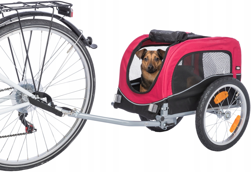 В прицепе собака может отдохнуть и отдохнуть после долгой пробежки. Велосипедный прицеп – отличное транспортное решение b>, особенно для пожилых или больных собак. В случае дождя водонепроницаемый чехол защитит собаку от намокнуть. При этом достаточное количество свежего воздуха обеспечивают боковые сетчатые вставки. Для большей безопасности в дорожном движении прицеп имеет светоотражатели, светоотражающую ткань и сигнальный вымпел. Для подключения прицепа к велосипеду достаточно только входящего в комплект фаркопа.