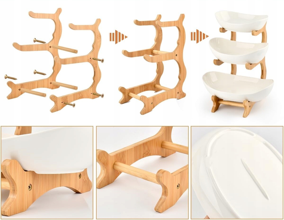 ⭐⭐⭐3 ГОРИЗОНТАЛЬНЫЕ БАМБУКОВЫЕ ПОДСТАВКИ ДЛЯ ФРУКТОВ, ЗАКУСОК, ХЛЕБА + 3 БЕЛЫЕ КЕРАМИЧЕСКИЕ ЧАШКИ⭐⭐⭐