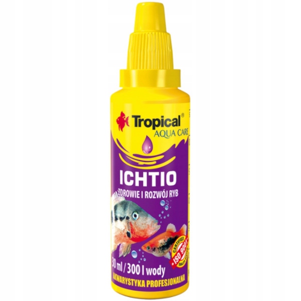 ICHTIO препарат для пресноводных аквариумов. Это особенно полезно в аквариумах, где возникла рыбья оспа, вызванная обыкновенным рыбным червем (Ichthyophthirius multifiliis). По возможности рекомендуем купать рыбок в отдельном аквариуме, это значительно облегчит наблюдение за ними.