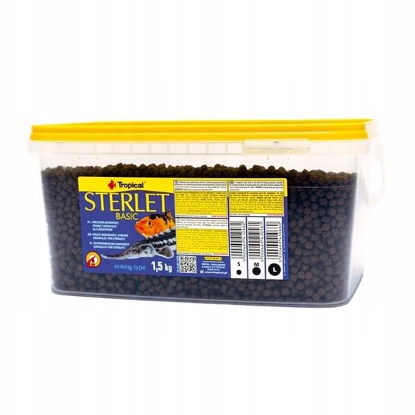 Tropical STERLET BASIC – полноценный базовый корм, предназначенный для ежедневного кормления осетровых рыб (Acipenseridae) и других донных рыб, например, декоративного карпа и сома. Тонущие, питательные, легкоусвояемые гранулы с идеально сбалансированным составом делают рыбу здоровой и быстро растут. Правильно сбалансированный, богатый белками и жирами продукт обеспечивает правильный рост и развитие. Комплекс витаминов и микроэлементов поддерживает рыб в отличном состоянии и активизирует иммунную систему, повышая их устойчивость к инфекциям.