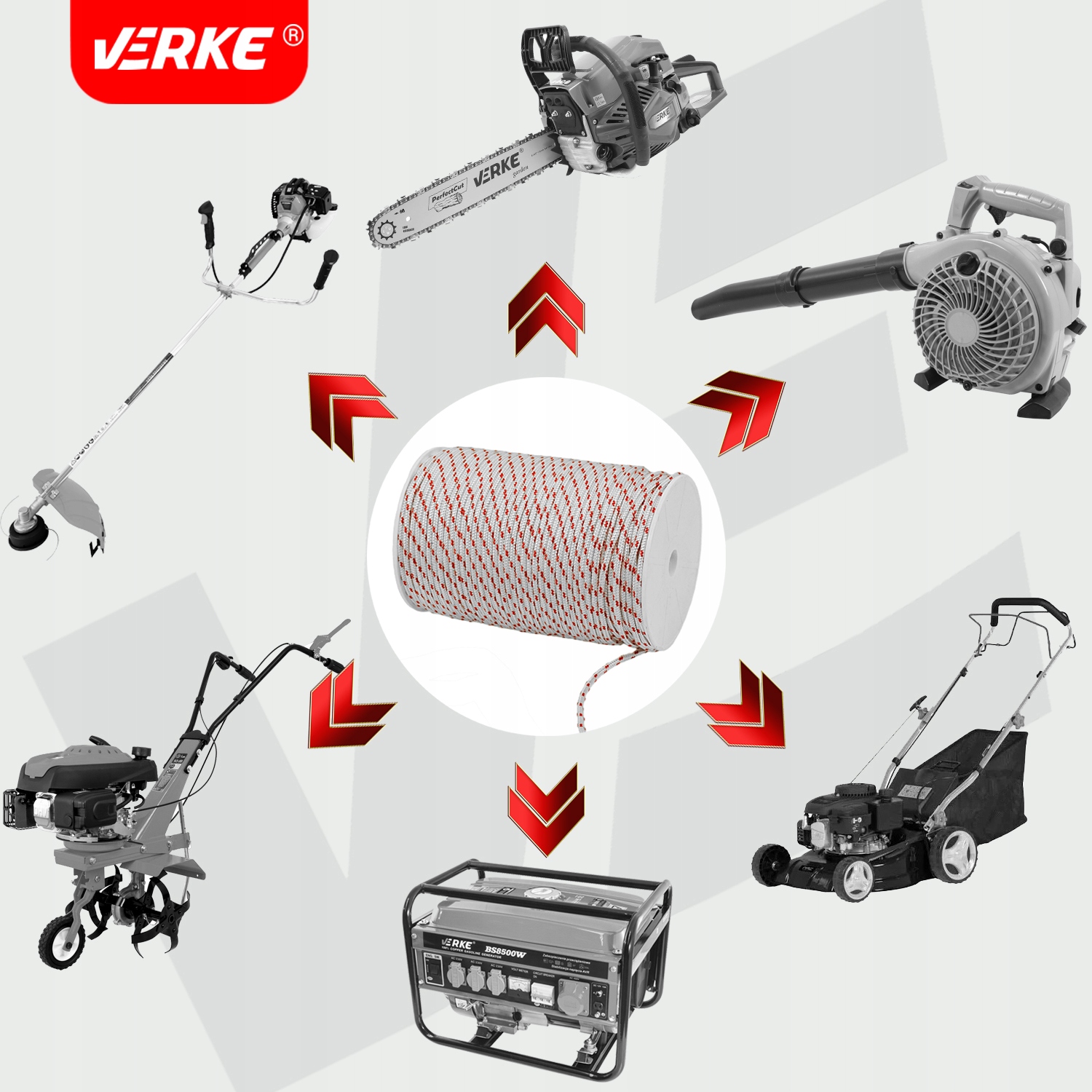 Стартовая струна VERKE GARDEN может использоваться в различных видах садовой и строительной техники с ручным запуском, например: