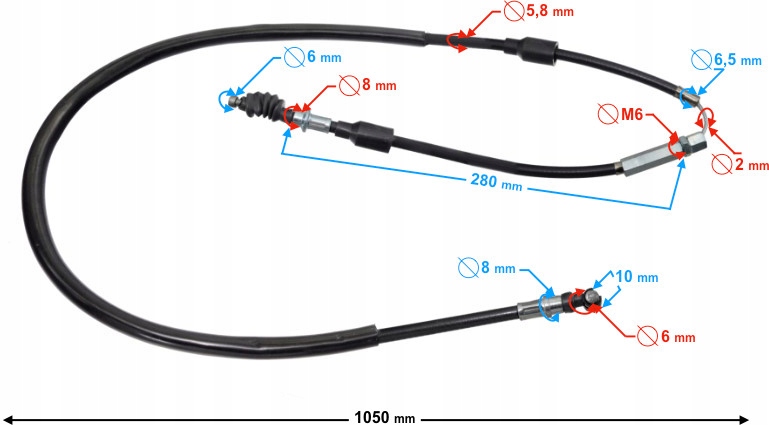 - общая длина кабеля: 1050 мм