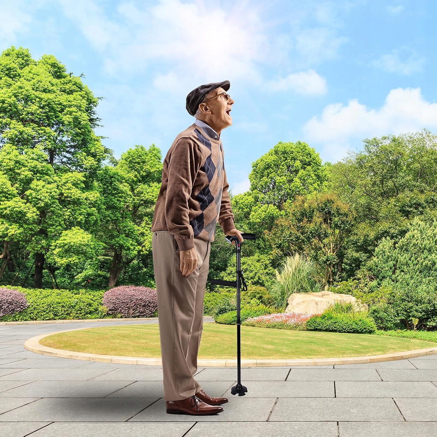 🩼🩼🩼 【Противоскользящий дизайн】Регулируемая трость имеет нескользящую резину. наконечник снизу, чтобы предотвратить падение и обеспечить безопасность. Четырехоснование, вращающееся на 360 градусов, обеспечивает дополнительное сцепление и устойчивость, поэтому ваши палки не скользят по мокрому асфальту или любой другой поверхности. Это позволяет вам легко ходить, бегать и поворачиваться.