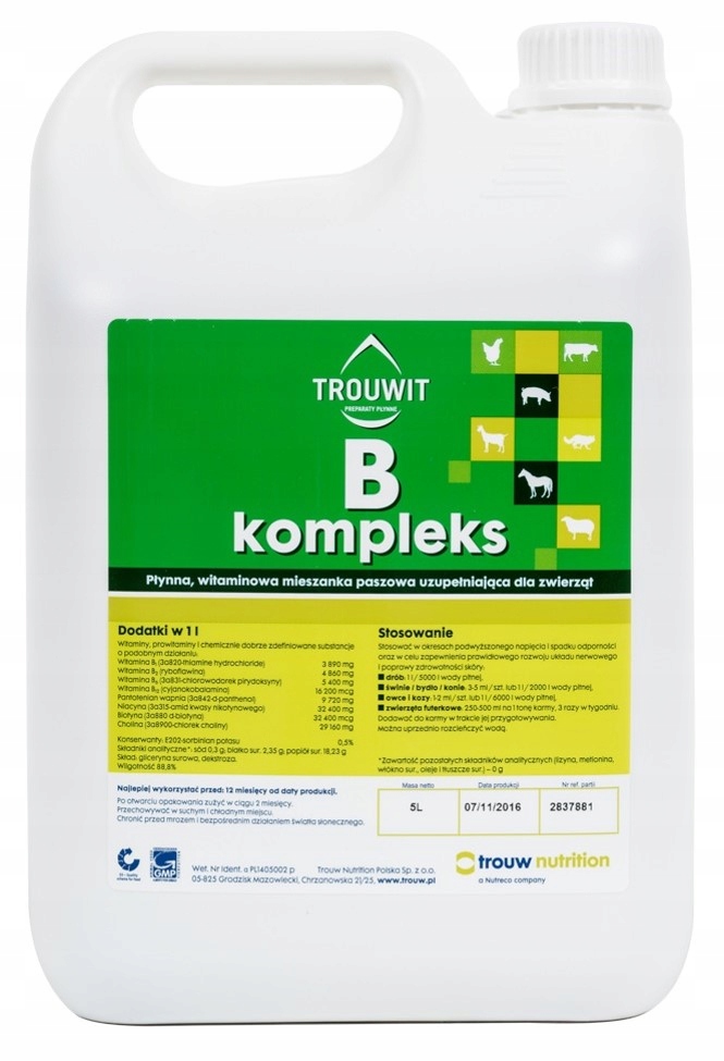 Оплачивая «TROUWIT B-комплекс 5л» данное изделие из «Питание и добавки для животных» вы можете быть уверены, что после оформления заказа, доставки в Украину, вы получите именно то, что заказывали, в оговоренные сроки и европейского качества.