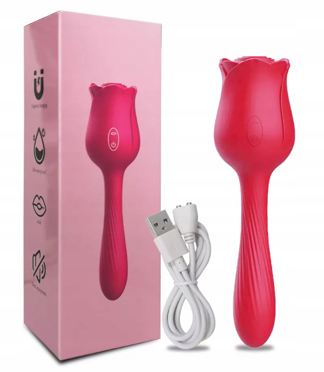 В комплект входят: Коробка + Вибратор (Роза красная) + кабель для зарядки.