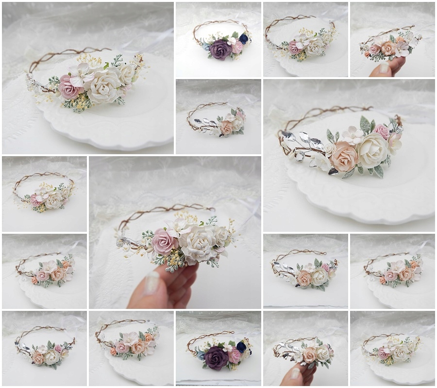 Регулируемая ширина венка - он привязан сзади к атласной ленте. Девочки и взрослые