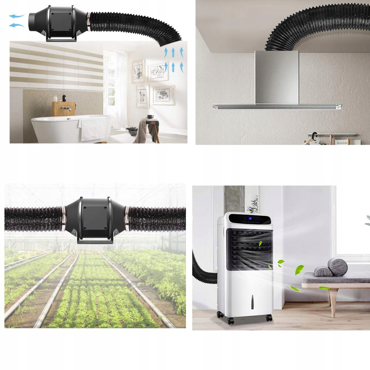 - Широко используется в системах кондиционирования воздуха HVAC, кухнях, теплицах и комнатах для выращивания, ванных комнатах, сушильных камерах, палатках для выращивания, и т. д. .