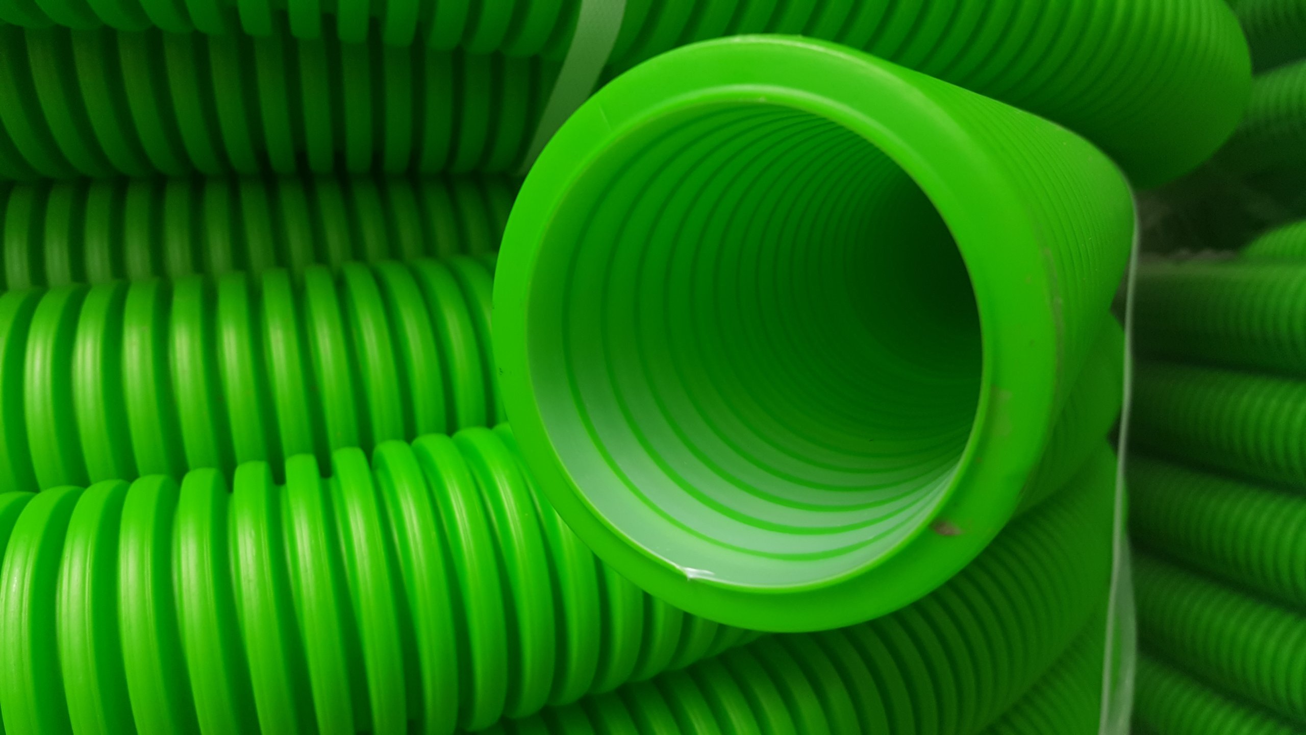 Двустенный воздуховод с гофрированной внешней стенкой и гладкой внутренней стенкой и антистатическим покрытием.