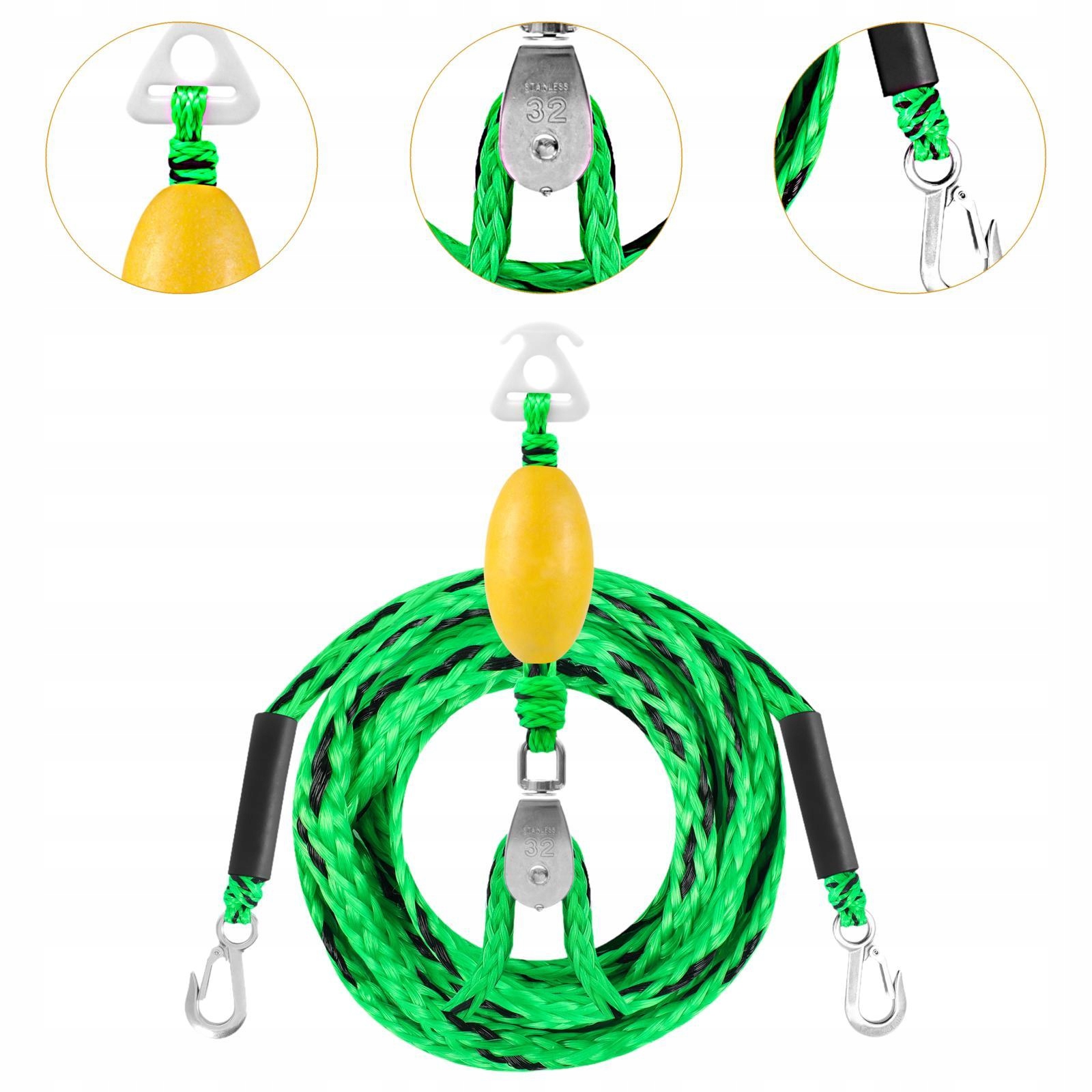 [Durable construction]: This towed rope is made of the highest quality PE material and has two solid hooks, ensuring long -term performance during activity in water sports