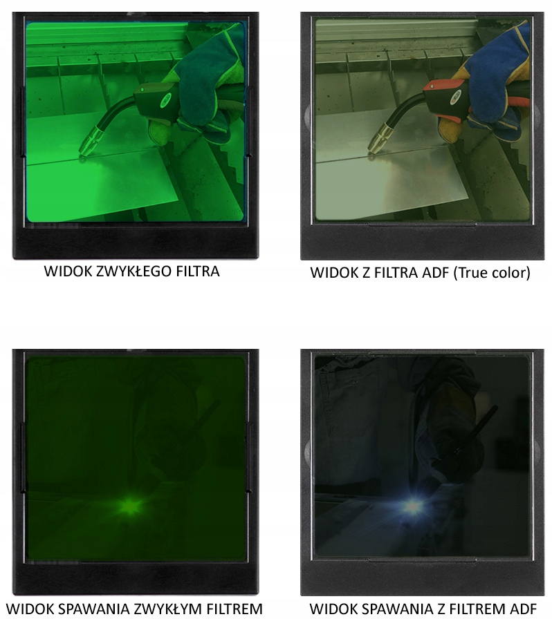 Активная сварочная маска, оснащенная сварочным фильтром с автоматическим затемнением (ADF - Auto Darkening Filter). После начала сварки фильтр автоматически увеличивает уровень затемнения, не вызывая бликов, и светлеет при выключении сварочной дуги. Не снимая и не открывая козырек, сварной объект виден практически все время.