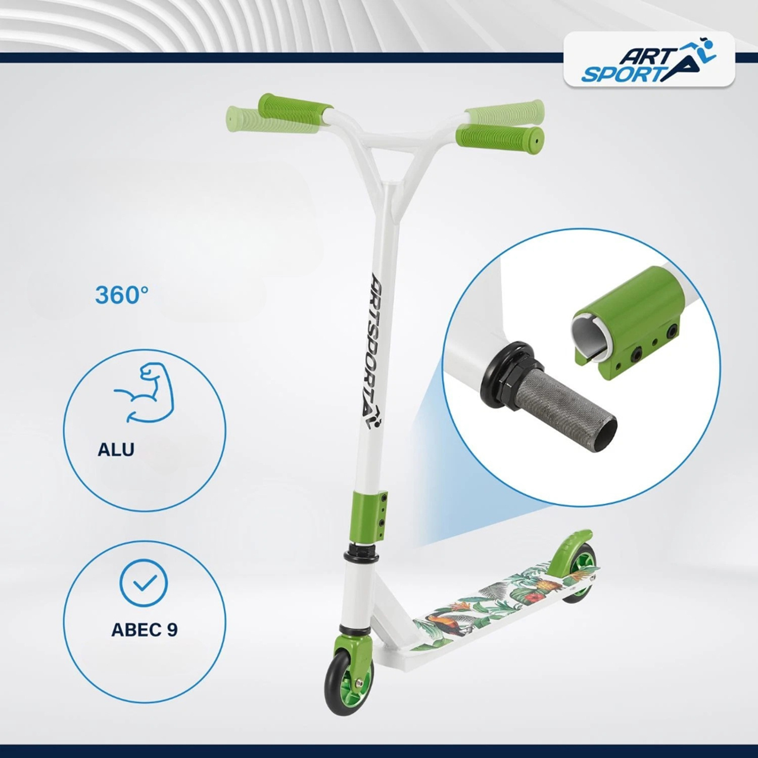 Наслаждайтесь катанием на Stunt Scooter модели HAWAIIAN от немецкого бренда ARTSPORT® — самокате, созданном для впечатляющих трюков и развлечений в скейт-парке. Предназначен для детей от 6 лет и подростков, любящих движение и спортивный стиль. Благодаря легкой и в то же время устойчивой конструкции из алюминия и стали самокат обеспечивает безопасность при выполнении прыжков и акробатики.
