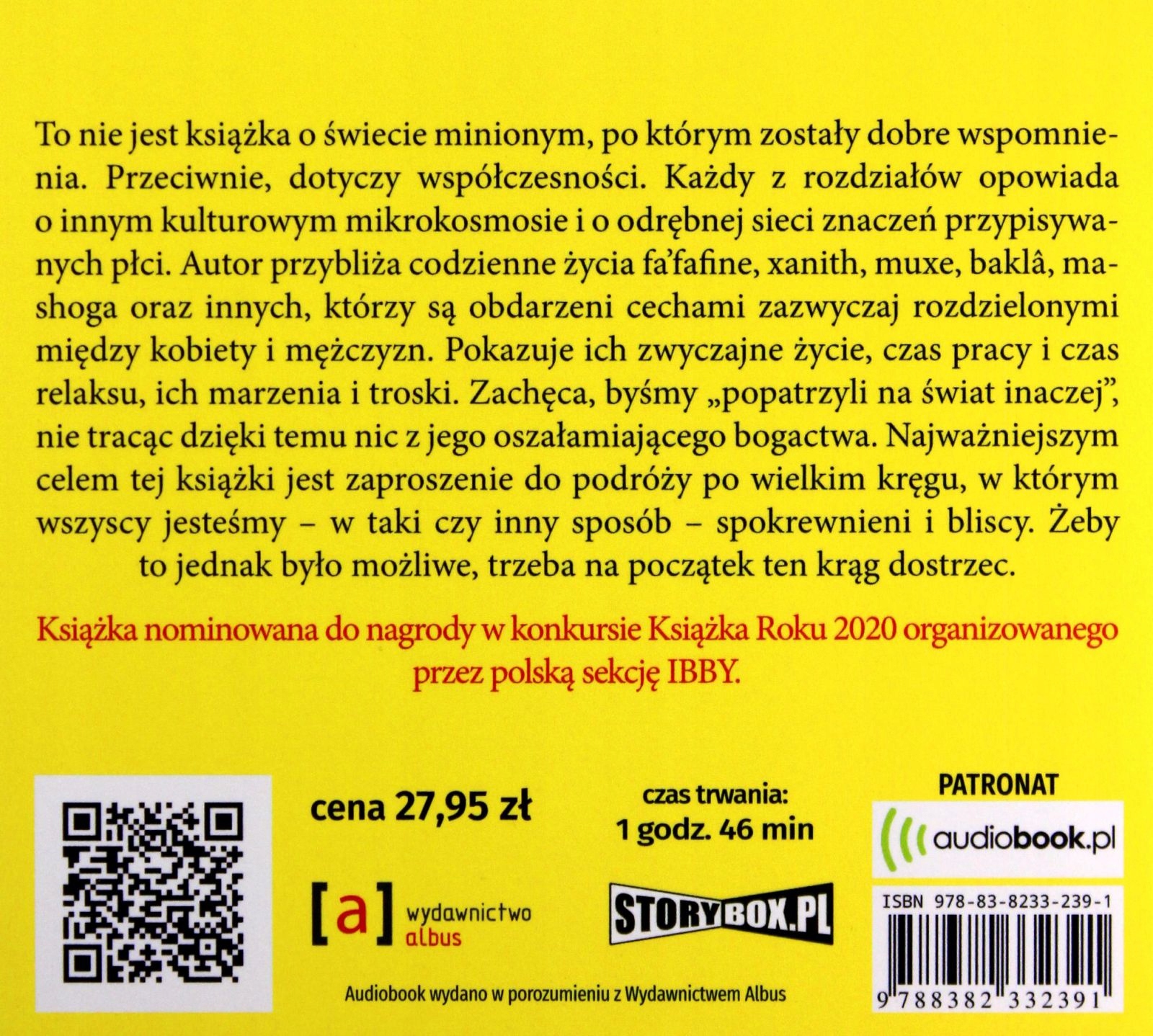 Это не книга об ушедшем мире, оставившая хорошие воспоминания. Наоборот, это касается современности. Каждая глава рассказывает о своем культурном микрокосме и отдельной сети значений, приписываемых полу. Автор описывает повседневную жизнь фафафине, ксанита, муксе, баклы, машоги и других людей, наделенных характеристиками, обычно разделяемыми между женщинами и мужчинами. На нем показана их обычная жизнь, время работы и отдыха, их мечты и заботы. Он призывает нас «взглянуть на мир по-другому», не теряя ни капли его потрясающего богатства. Важнейшая цель этой книги — пригласить вас путешествовать по большому кругу, в котором все мы — так или иначе — связаны и близки. Однако, чтобы это стало возможным, вы должны сначала заметить этот круг. Книга получила награду в конкурсе «Книга года 2020», организованном польской секцией IBBY.