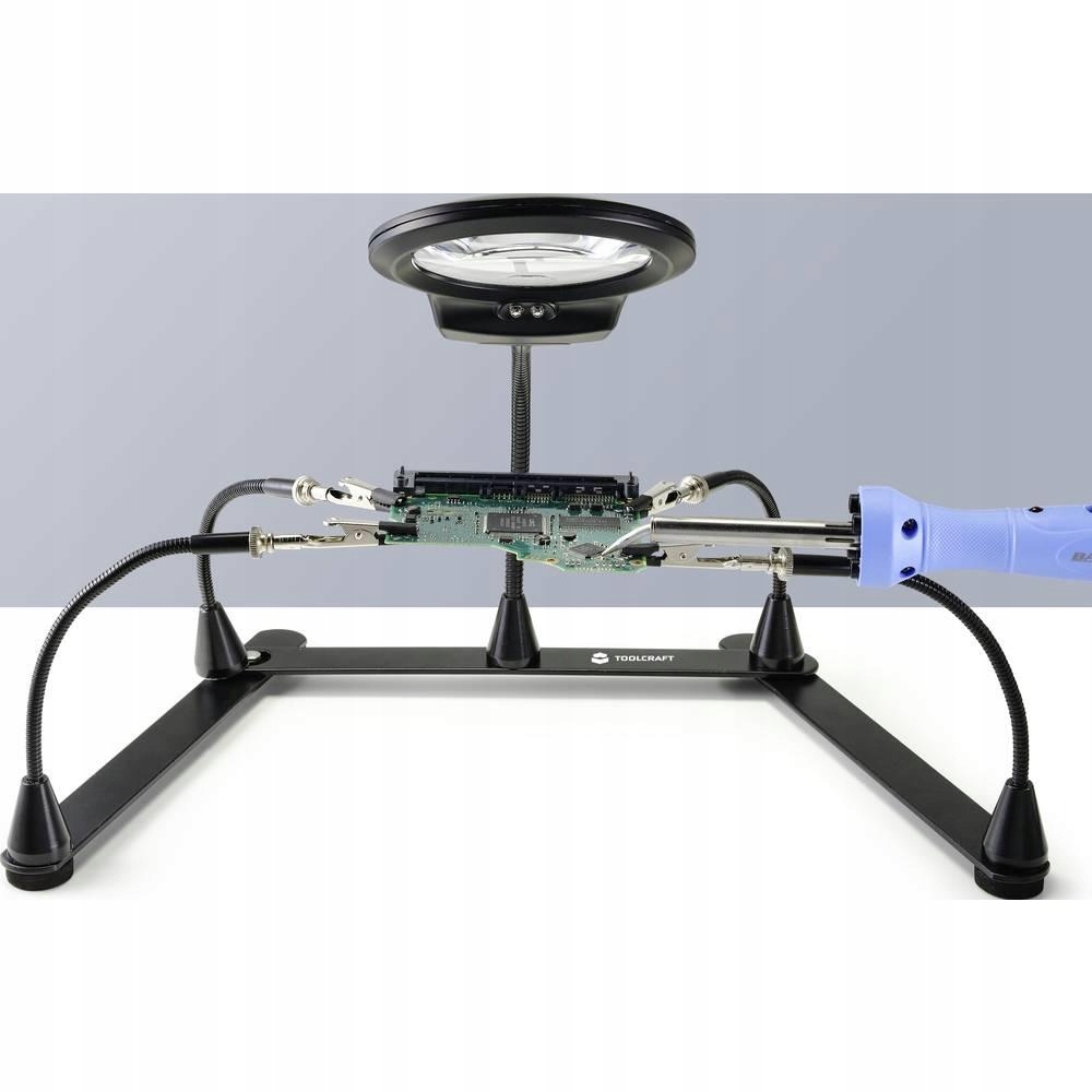 - 1 магнитный подвижный кронштейн Гибкая шея с увеличительным стеклом (4x, 6x, 2 встроенных светодиода)4x магнитные подвижные ручки "гусиная шея" с зажимами типа "крокодил"1x регулируемая стальная ножка