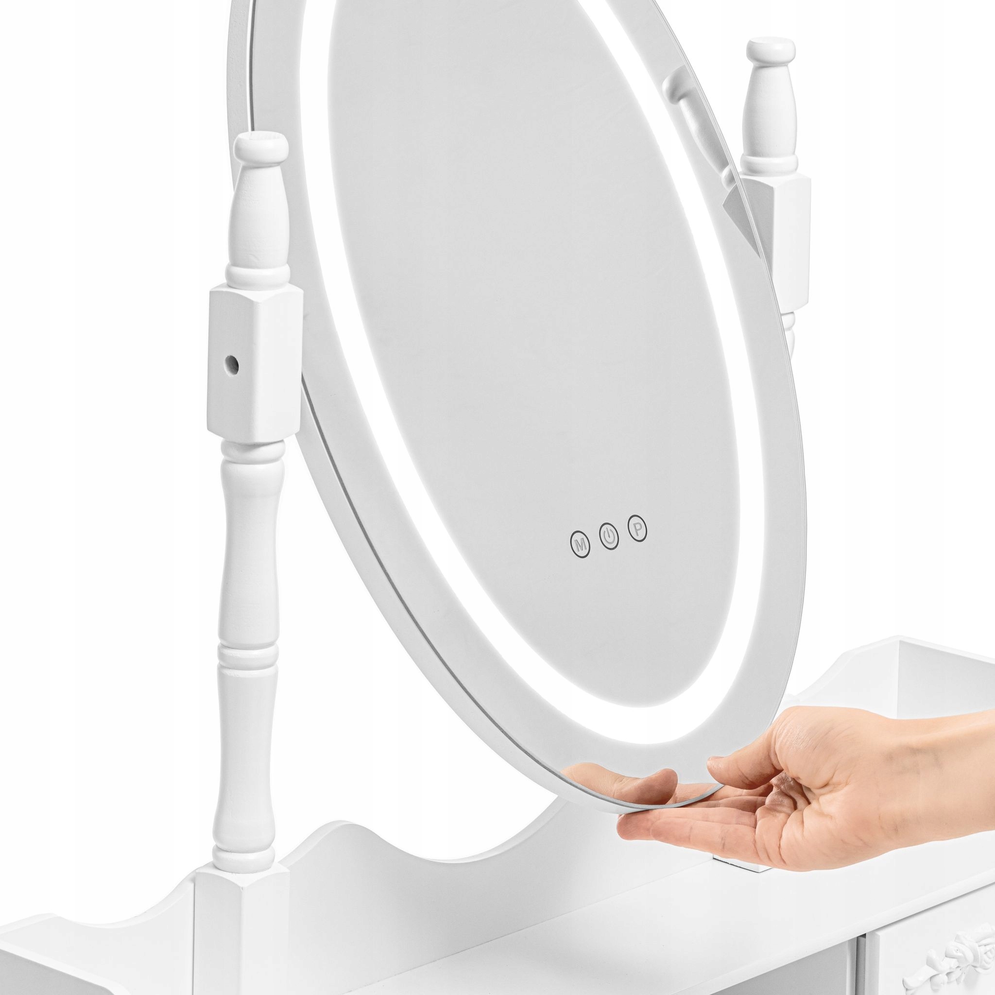 Зеркала, встроенные в туалетный столик, гарантируют, что ни одна, даже самая маленькая деталь вашего макияжа не ускользнет от вашего внимания. Светодиодное освещение адаптируется к условиям в комнате, что позволяет точно наносить макияж независимо от времени суток.