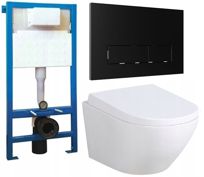 ТУАЛЕТНЫЙ НАБОР 7в1 LAVITA FRAME КНОПКА МАТОВЫЙ ЧЕРНЫЙ УНИТАЗНИК УЗКИЙ ОБОД БЕЛЫЙ