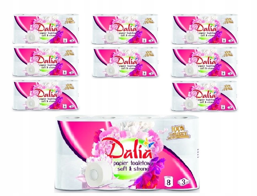 Туалетная бумага Dalia soft&strong белая, 3-слойная (8 рулонов) x 9 упаковок