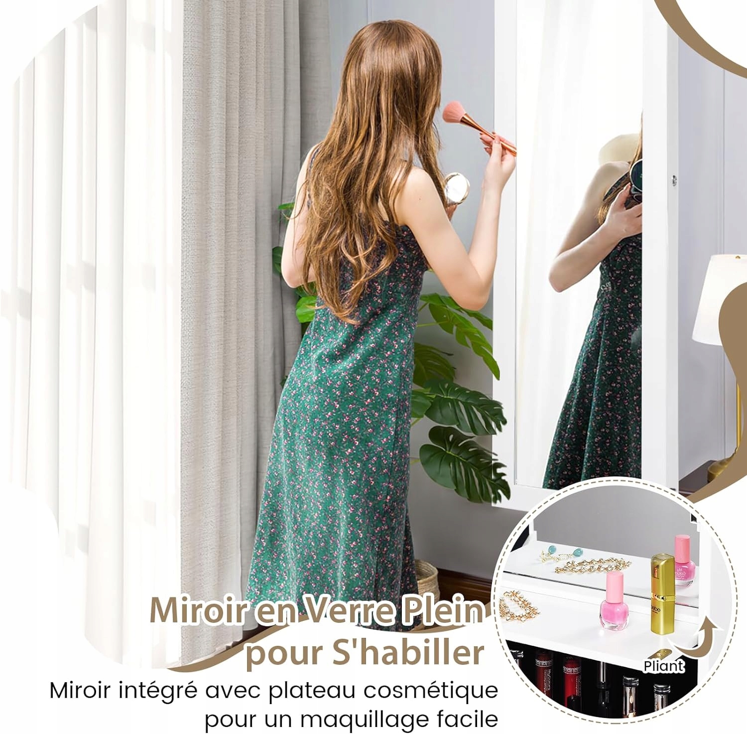 Шкафчик для драгоценностей 2 в 1 с зеркалом: Органайзер для драгоценностей представляет собой комбинацию зеркала в полный рост и украшения. шкаф, так что вы сможете насладиться двойными преимуществами обоих в одном месте. Размер переднего зеркала в полный рост составляет 26,5 x 110 см (Д x В), поэтому вы можете видеть себя с головы до пят во время нанесения макияжа.