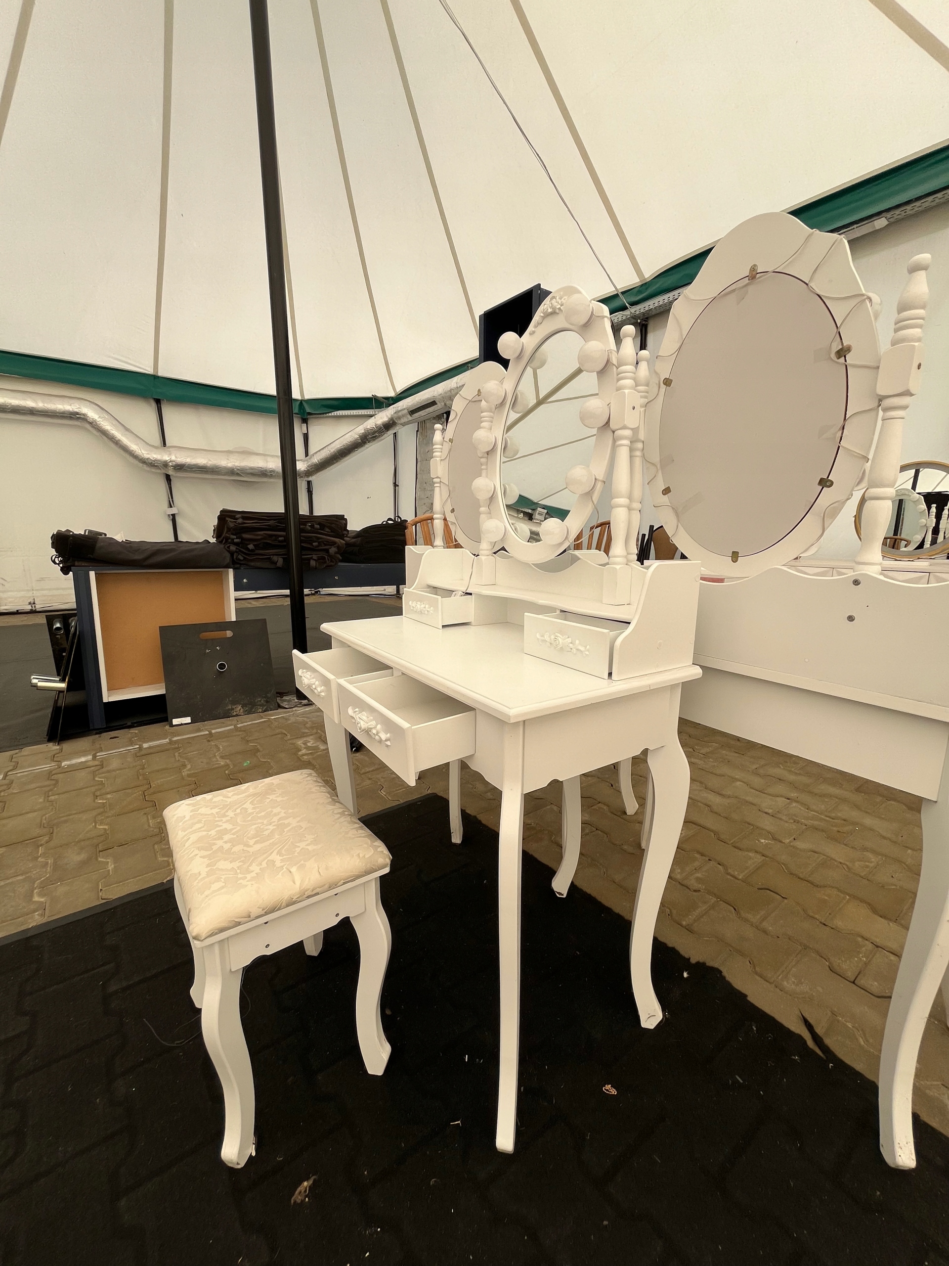 КОСМЕТИЧЕСКИЙ СТОЛИК С ЗЕРКАЛОМ И СВЕТОДИОДНЫМ ЗЕРКАЛОМ + ТАБУРЕТ