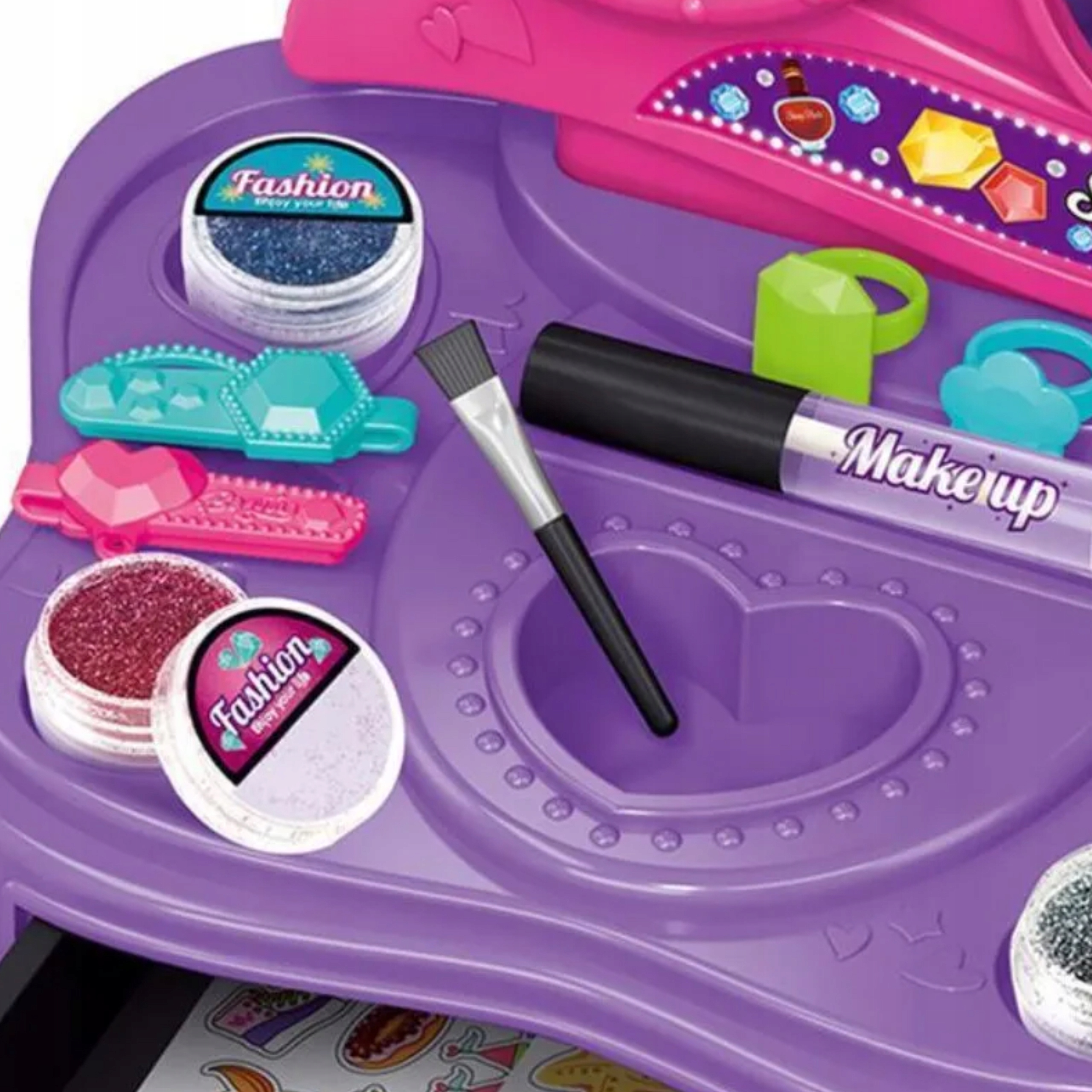 Туалетный столик 2в1 для студии макияжа — идеальный набор для юных модниц и любителей моды. Этот набор даёт возможность проявить свой стиль, развить творческие способности и воображение. Предназначен для детей от 3 лет, онполностью безопасен и доставляет массу удовольствия. >/p>