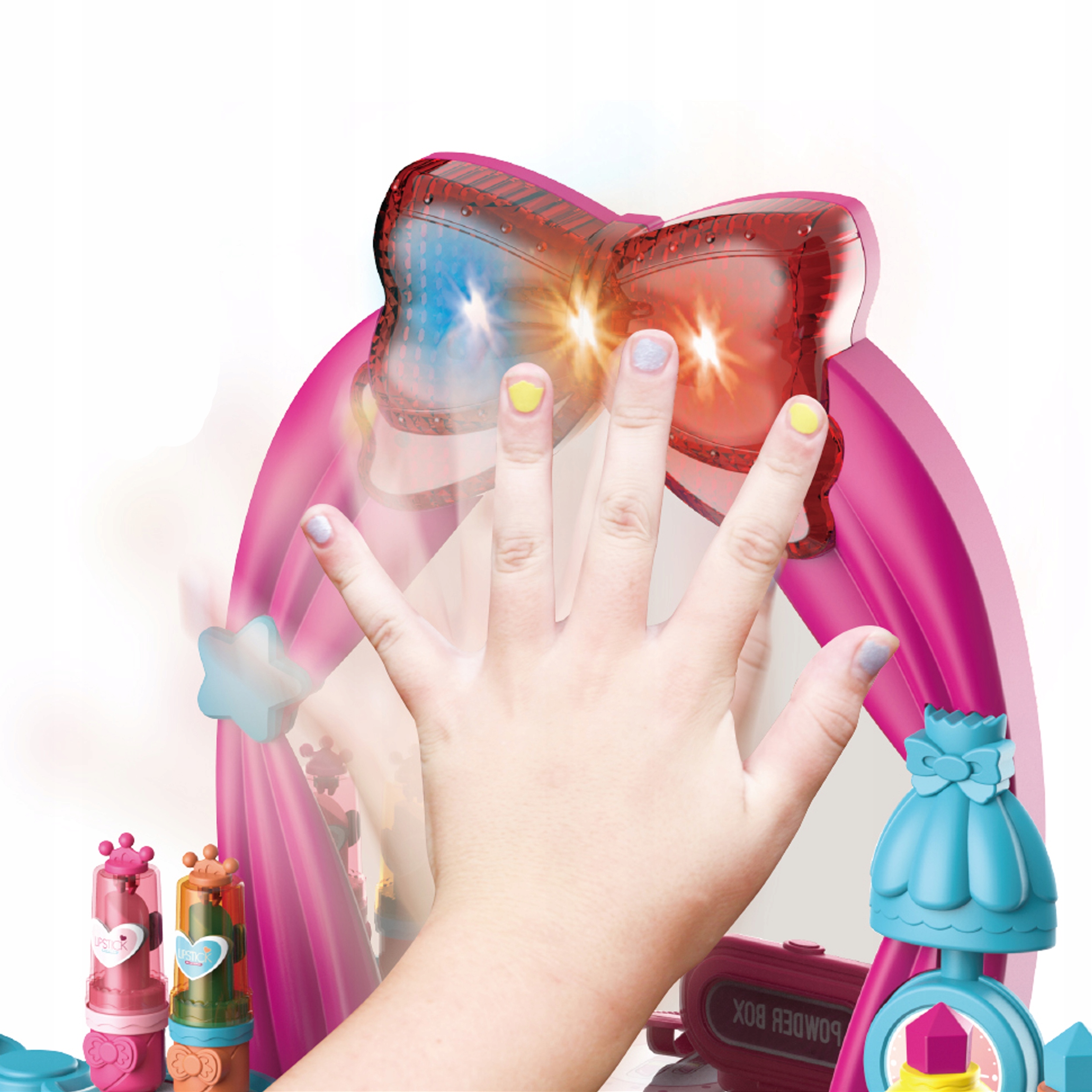 Прелестный туалетный столик с настоящим зеркалом, светящимся бантом с мелодиями и бесконтактным выключателем!