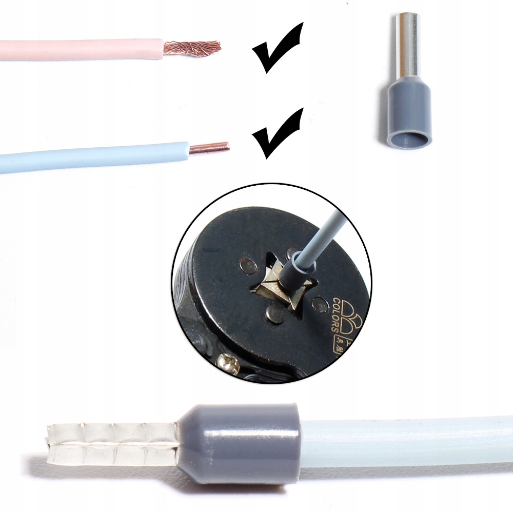 Правильно обжатые наконечники даже после повторной сборки в клемме, установленной с соответствующим контактом.