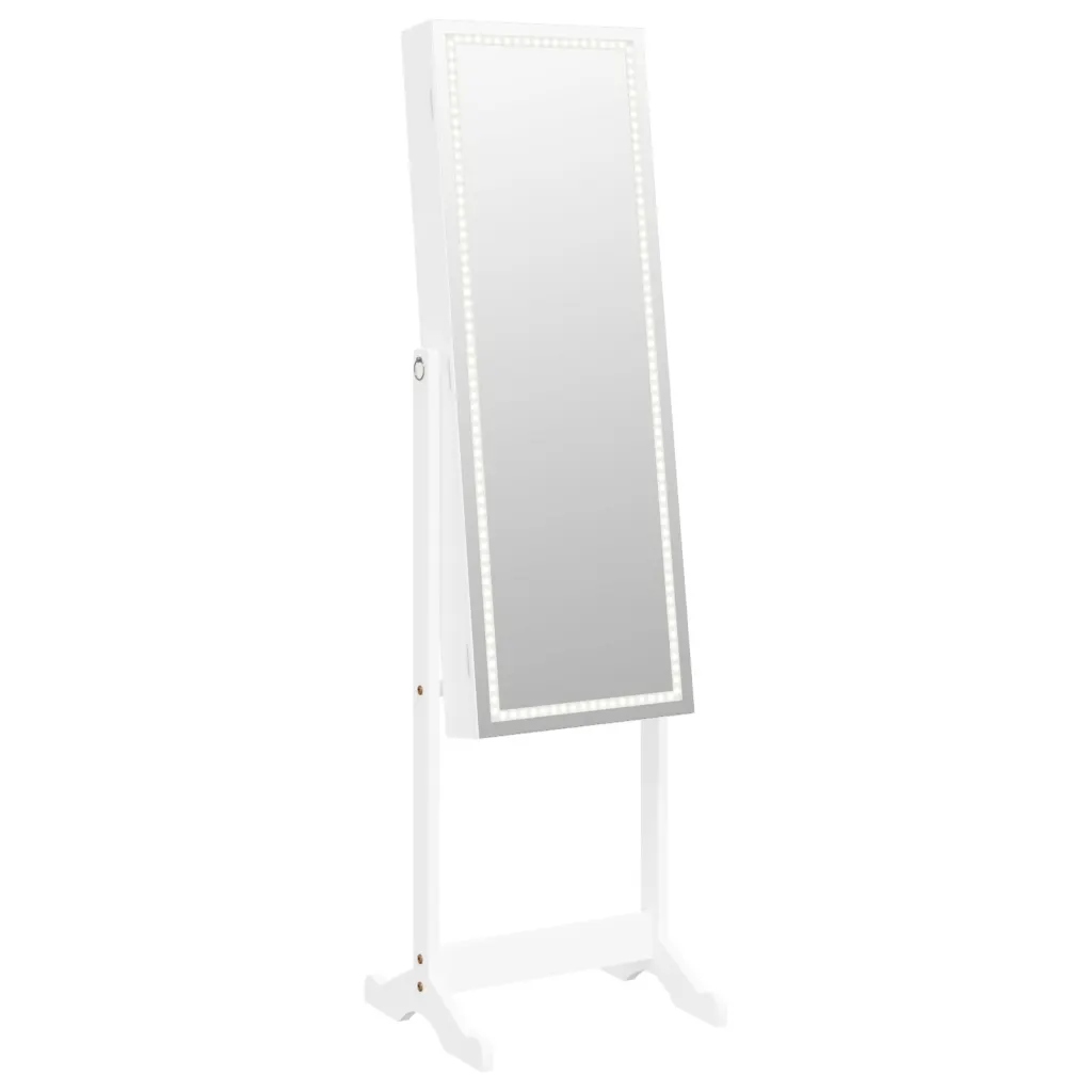 Шкаф для украшений с зеркалом и светодиодной подсветкой, отдельно стоящий, белый