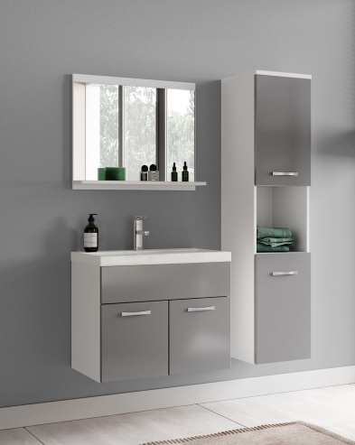 Тумба для ванної кімнати сіра з дзеркальним умивальником, 60 см