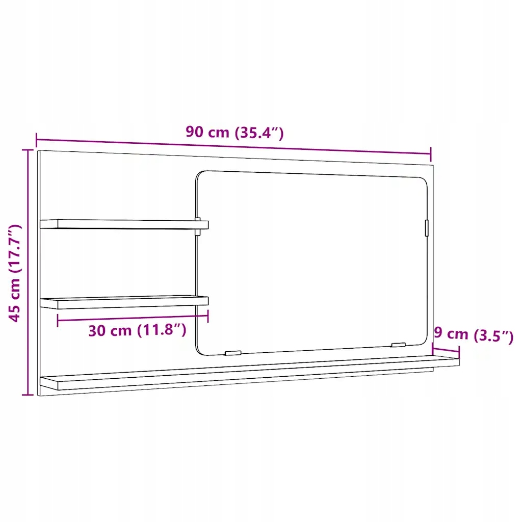 - Общие размеры: 90 x 11 x 45 см (Ш x Г x В)