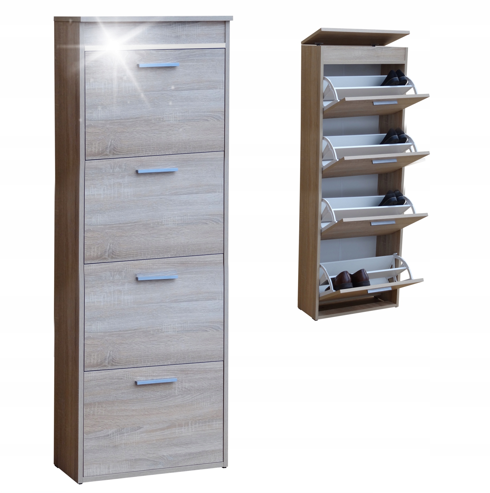 Шкаф для обуви, высота 164см. Изготовлен из ламинированной плиты толщиной 18 мм. Все покрыто шпоном ПВХ. Упаковано в упаковку, содержащую набор необходимых элементов вместе с инструкцией. На другом нашем аукционе вы можете приобрести вешалку и подходящее зеркало.