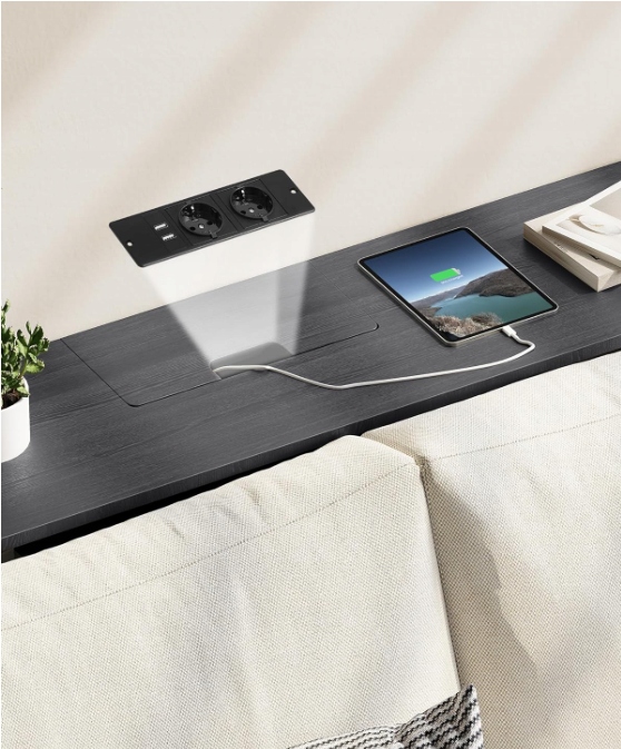 Консоль VASAGLE LNT111B01 с розетками, приставной столик с 2 отделениями, узкая, 25 x 120 x 81,1 см, компактная, для прихожей, гостиной, антрацит-серо-чернильный