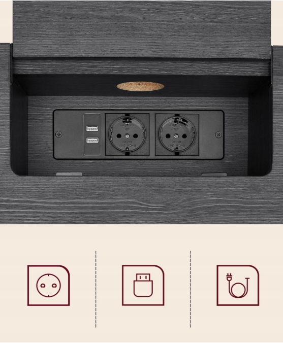 - [Опрятная столешница ] Блок питания спрятан в легкодоступном отсеке, а отверстие для кабеля на задней панели позволяет прокладывать кабели снизу, чтобы поддерживать порядок на столе.