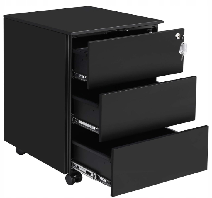 Прочный и практичный: документы, канцелярские принадлежности, личные вещи — все, что вам нужно. необходимость в работе, он найдет свое место в этом колесном контейнере. Каждый из 3 больших ящиков вмещает до 15 кг, а направляющие полного выдвижения обеспечивают большее удобство как при открывании, так и при закрывании ящиков. Более того, стальная конструкция достаточно прочна, чтобы прослужить долгие годы.