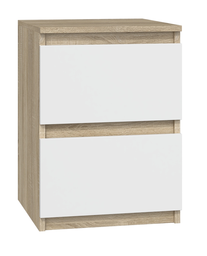 <р> СОВРЕМЕННЫЙ ШКАФ/ТУМОЧКА С 2 ЯЩИКАМИ СЕРИЯ: МАЛЬВА МОДЕЛЬ: M2 ЦВЕТ: СОНОМА/БЕЛЫЙ Прикроватные тумбочки – незаменимый элемент каждой спальни. Очки, любимая книга или телефон должны быть всегда под рукой. Вот почему наши прикроватные тумбочки – идеальное решение. Универсальный внешний вид оправдает ожидания всех, кто ценит сочетание простоты и элегантности. <ул> <ли> Минималистичный дизайн. <ли> Фасады ящиков без ручек обеспечивают удобство использования и подчеркивают модернистский характер интерьера. <ли> Очень хорошее качество изготовления. <ли> Новый тип фурнитуры, гладкие бока без заглушек. <ли> Польский продюсер<р>